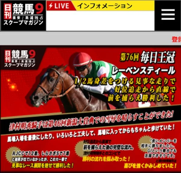 コンテンツの充実度を求めるなら間違いなく日刊競馬9!もちろん予想も◎!